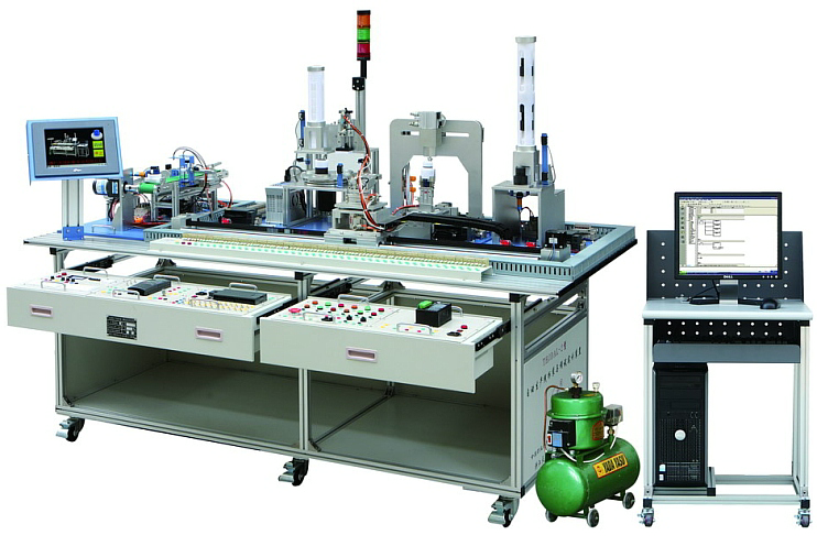 光機(jī)電一體化實訓(xùn)裝置由鋁合金導(dǎo)軌式實訓(xùn)臺、典型的機(jī)電一體化設(shè)備的機(jī)械部件、PLC模塊、變頻器模塊、按鈕模塊、電源模塊、模擬生產(chǎn)設(shè)備實訓(xùn)模塊、接線端子排和各種傳感器、計算機(jī)等組成。