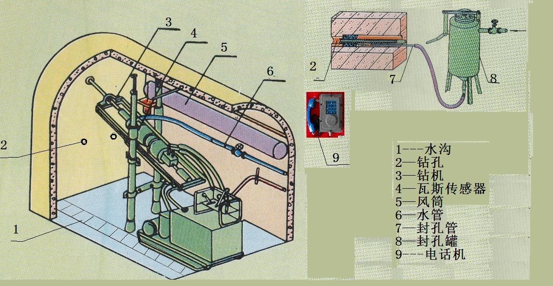 抽放泵、管線、煤電鉆、封孔材料、模擬煤體.