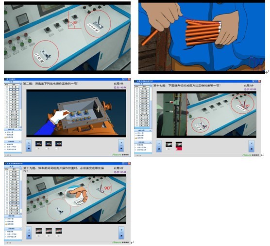本產(chǎn)品通過三維場(chǎng)景和二維動(dòng)畫的結(jié)合,模擬現(xiàn)場(chǎng)生產(chǎn)環(huán)境、演示煤礦特殊工種(主提升機(jī)操作工、安全檢查工、井下爆破工、采煤(掘進(jìn))機(jī)司機(jī)、瓦斯檢查工、井下電鉗工、煤礦瓦斯抽采作業(yè)、煤礦防突作業(yè)、煤礦探放水作業(yè)、煤礦安全監(jiān)測(cè)監(jiān)控作業(yè)等)崗位安全操作的要領(lǐng)、注意事項(xiàng)、常見錯(cuò)誤、災(zāi)害預(yù)兆,預(yù)防措施和各種案例。手指口述講述重點(diǎn)、難點(diǎn)和崗位標(biāo)準(zhǔn)。