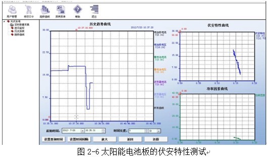 將太陽能發(fā)電電池板輸出端接成12v或者24v輸出形式,接到滑動變阻器兩端,觀察電流電壓變化。通過監(jiān)控軟件的到相應(yīng)的數(shù)據(jù)。如圖2-6所示: