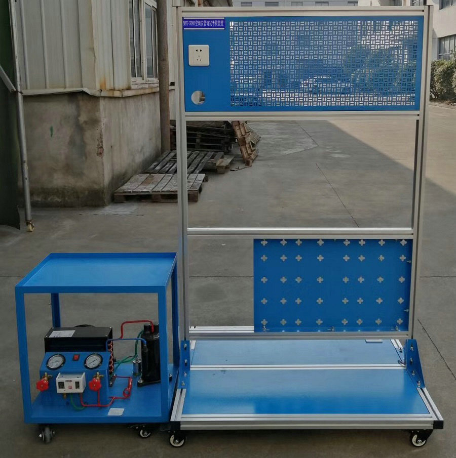 空調(diào)安裝調(diào)試考核實(shí)驗(yàn)設(shè)備-采用鐵質(zhì)框架作為實(shí)訓(xùn)平臺(tái),外型美觀大方。支架結(jié)構(gòu)方便移動(dòng)安裝,主要是家用分體式空調(diào)的安裝、維修、調(diào)試等實(shí)訓(xùn)操作提供一個(gè)很好的平臺(tái)。本裝置配有制冷劑回收設(shè)備,可對(duì)空調(diào)機(jī)中的制冷劑進(jìn)行回收,回收的制冷劑可反復(fù)使用,這樣不但可以有效的節(jié)約成本而且可以保護(hù)環(huán)境。本裝置還配有便攜式焊炬,制冷工基本的維修工具,可使學(xué)生學(xué)習(xí)維修工具的使用和操作方法。使學(xué)生在走出學(xué)校后能真正學(xué)到實(shí)用的維修技能。本裝置適合制冷相關(guān)專業(yè)的初、中級(jí)技能實(shí)訓(xùn)考核與鑒定。