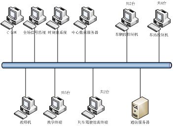 OCC實(shí)訓(xùn)系統(tǒng)配備數(shù)據(jù)庫(kù)、通信服務(wù)器、車(chē)輛段控制各1臺(tái),機(jī)車(chē)遠(yuǎn)程控制終端電腦1臺(tái)(安裝機(jī)車(chē)控制系統(tǒng),用于遠(yuǎn)程操控列車(chē)),調(diào)監(jiān)控制計(jì)算機(jī)1臺(tái)(操控大屏幕顯示系統(tǒng)),安裝ATS子系統(tǒng)、ATP/ATO子系統(tǒng)、C_LOW系統(tǒng)的中心控制計(jì)算機(jī)各1臺(tái)(完成運(yùn)營(yíng)調(diào)度、運(yùn)行圖編制與調(diào)整、命令下發(fā)、故障設(shè)置等功能)。OCC實(shí)訓(xùn)系統(tǒng)大屏幕顯示系統(tǒng)采用國(guó)際知名公司生產(chǎn)的LED背光拼接墻顯示器,由2*2拼接液晶大屏組成,可完整顯示全線路運(yùn)行狀況,也可分屏顯示列車(chē)進(jìn)站時(shí)的視頻圖像。