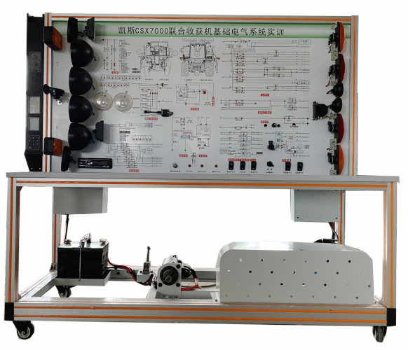 該設(shè)備采用全新凱斯CSX700收獲機(jī)  整車電器實(shí)物為基礎(chǔ),充分展示儀表系統(tǒng)、燈光系統(tǒng)、雨刮系統(tǒng)、喇叭系統(tǒng)、發(fā)動機(jī)電器系統(tǒng)、影像系統(tǒng)、起動系統(tǒng)和充電系統(tǒng)等電器各系統(tǒng)的組成結(jié)構(gòu)和工作過程。