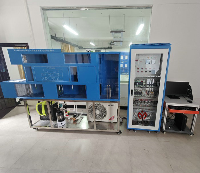 該系統(tǒng)由實驗臺、空調(diào)冷熱源系統(tǒng)、空氣循環(huán)模擬系統(tǒng)、空調(diào)控制與測試系統(tǒng)和電氣控制柜等組成。使用不銹鋼和有機(jī)玻璃材料防止設(shè)備生銹和老化。設(shè)備配有真實的恒溫供暖、恒溫冷氣系統(tǒng),直觀生動地把工業(yè)實際應(yīng)用展現(xiàn)出來,簡潔明了。采用帶標(biāo)準(zhǔn)通訊接口的控制器,保證了中央空調(diào)系統(tǒng)與樓宇系列其他子系統(tǒng)及管理層的無逢集成。
