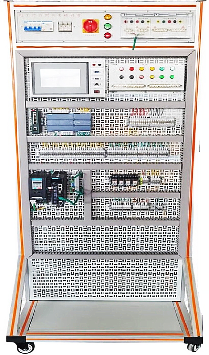 該裝置采用萬能網(wǎng)孔板開放式設(shè)計(jì),自由組合的思路, 裝有完成各種低壓電氣控制所需要的多種低壓電器,如漏電斷路器、熔斷器、電流互感器、交流接觸器、時(shí)間繼電器、熱繼電器、中間繼電器、行程開關(guān)、按鈕、信號(hào)燈、轉(zhuǎn)換開關(guān)、電壓表、電流表等,學(xué)員根據(jù)實(shí)訓(xùn)項(xiàng)目的要求,選取器件、組合成相應(yīng)的實(shí)訓(xùn)電路,完成電力拖動(dòng)線路安裝、接線、調(diào)試及工藝整理,滿足實(shí)訓(xùn)教學(xué)、鑒定培訓(xùn)及職業(yè)競賽的需要。