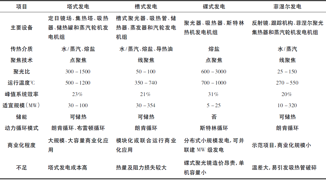 表1 四種光熱發(fā)電技術(shù)的特性對(duì)比表