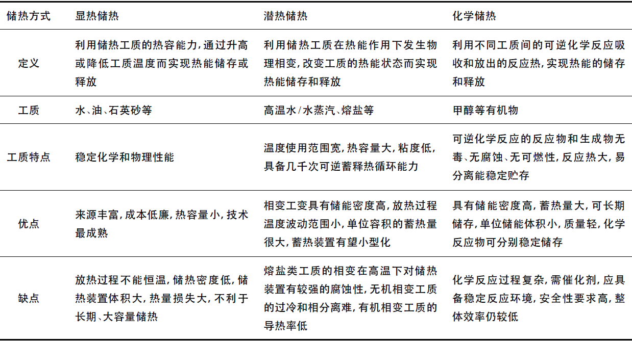 表2 太陽(yáng)能光熱發(fā)電系統(tǒng)中蓄熱方式的特性對(duì)比