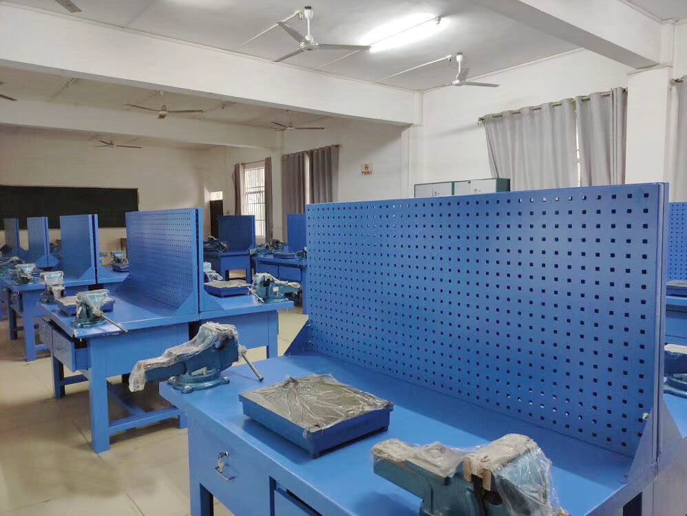 實訓車間現(xiàn)有鉗工實訓臺、鉆床、工、卡量具以及銼刀、錘子、鏨子等日常工具。鉗工實訓教學的內(nèi)容,主要進行測量、劃線、鋸割、銼削、鉆孔、校正與彎曲、攻絲與套絲、鉸孔、裝備等鉗工基本功操作。圍繞著“鏨、鋸、銼”的基本功、鐵板類的零件加工工藝及與其相關(guān)的技能知識、工具使用知識、工藝分析知識,精密配合零件的加工工藝知識,能滿足煤礦主體專業(yè)及機械類專業(yè)基本功訓練要求。