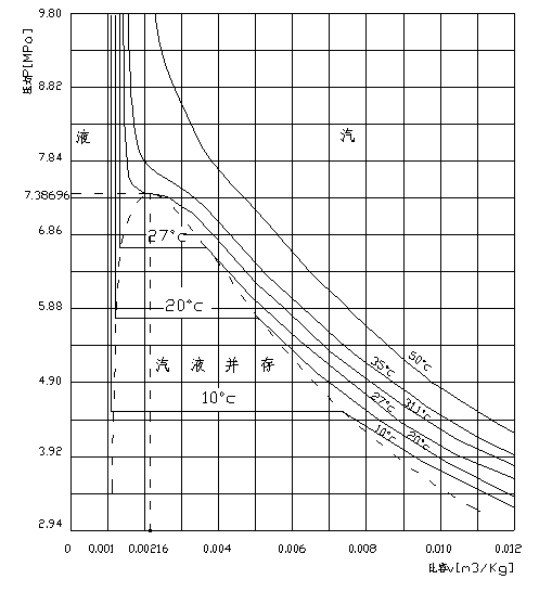 (m3/kg)| t=20℃ | t=31.1℃(臨界) | t=50℃ | ||||||||||