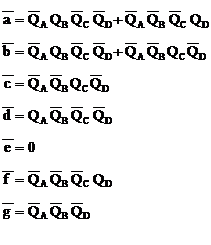 4個D觸發(fā)器的D端作為搶答操作狀態(tài)輸入,設(shè)A組先按按鈕,A組的D=1,在CP作用下,QA=1, =0。由于 =0,使門G1輸出為1,G2門輸出為0,封鎖了CP,使其他后按的D狀態(tài)傳不到Q端。當A輸出為1時,其他輸出為0,通過譯碼電路,使數(shù)碼管顯示“A”字符。字符顯示譯碼器的譯碼表如下。| QA QB QC QD | a b c d e f g |
