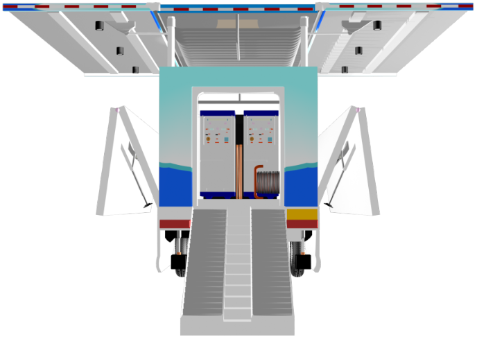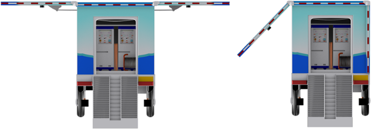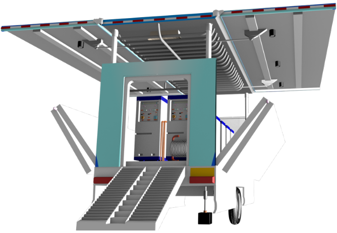 車體展開后實訓平臺的面積可以達到70平方米,可以滿足預定專業(yè)20多人的培訓需求。